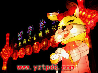 2006年春節(jié),揚(yáng)州工藝廠設(shè)計(jì)制作的一批傳統(tǒng)彩燈被送到了寶島臺(tái)灣。記者了解到,在這批花燈中,“百犬迎春”中一條大麥叮犬,長(zhǎng)10米,高9米,體重達(dá)10噸,運(yùn)用電腦科技制造出聲、光電動(dòng)效果,會(huì)搖頭、昂首、動(dòng)耳、擺尾,動(dòng)作自然,會(huì)講十五種語(yǔ)言。及至今年,揚(yáng)州花燈已連續(xù)6年春節(jié)為臺(tái)灣佛光山寺制作并展出了一批大型彩燈。