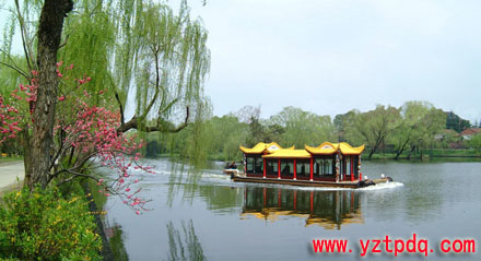 杜牧的“青山隱隱水迢迢,秋盡江南草未凋。二十四橋明月夜,玉人何處教吹簫。”一詩使二十四橋名聲不斐。二十四橋還有兩種說法:一說指二十四座橋,宋代沈括在《補筆談》中,對二十四橋一一考證,論證揚州確有二十四座橋;一說指一座橋,《揚州鼓吹詞》中寫道“是橋因古之二十四美人吹簫于此,故名”。我倒覺得又或許詩人未必是實指,而是泛指好多橋吧。過了二十四橋再往北就沒什么景點了,于是往回走,一路清風徐來,但見細柳拂岸,水波蕩漾,好不愜意,果然是“兩堤花柳全依水,一路樓臺直到山”的景象,風光旖旎,引人流連。