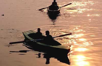 湖上的最佳去處,是那如同田田荷葉漂浮水面的墩阜。有的墩子蒿草環(huán)繞,有的墩子蘆葦摟抱,有的墩子菱角芡實包圍,有的墩子蓮葉荷花簇?fù)怼P〉膬H三五人容膝,中的可兩三家落戶,大的是像模像樣的村莊,大中之大的仿佛山岳雄踞,頗有一副笑傲江湖的氣概。這種墩子,前面有荷葉與蘆葦讓開的水道,碼頭有層層向上的水泥臺階,道路兩旁是綠樹掩映的別墅小樓。家家樓頂豎起的魚骨天線,告訴人們這里能夠瞭望世界。如在墩上覓古尋寶,可以看到不少明清的遺物,還有一些漢魏隋唐的陶片和器皿殘件。