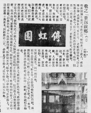 上世紀(jì)二十年代,素有“副刊圣手”之稱的老報人張慧劍游揚州,也寫了一篇散文“揚州游記”,收錄于上海世界書局1929年6月出版的《湖山味》,文中提到:“揚州人因為這是蓋了紀(jì)念徐寶山的,因人及園,徐園遂也成為一個名勝了。當(dāng)我踏到徐園的盡頭處,看見墻上嵌有一塊碑石,大書曰:倚虹園。我有一個死掉的朋友畢倚虹,我又有一個常去吃飯的所在倚虹樓,我還有一個最歡喜聽她唱白盔白甲白旗號的歌女倚虹閣;倚虹園三字便合我如同他鄉(xiāng)遇故知一般,毫不客氣地鉆進我記憶里。”