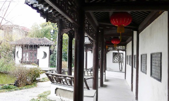 站在小院內,環顧四周。北為二分明月樓,西南有迎月樓,東有夕照閣,院西為伴月亭連南北向長廊,廊壁嵌有徐凝等詩詞磚刻。